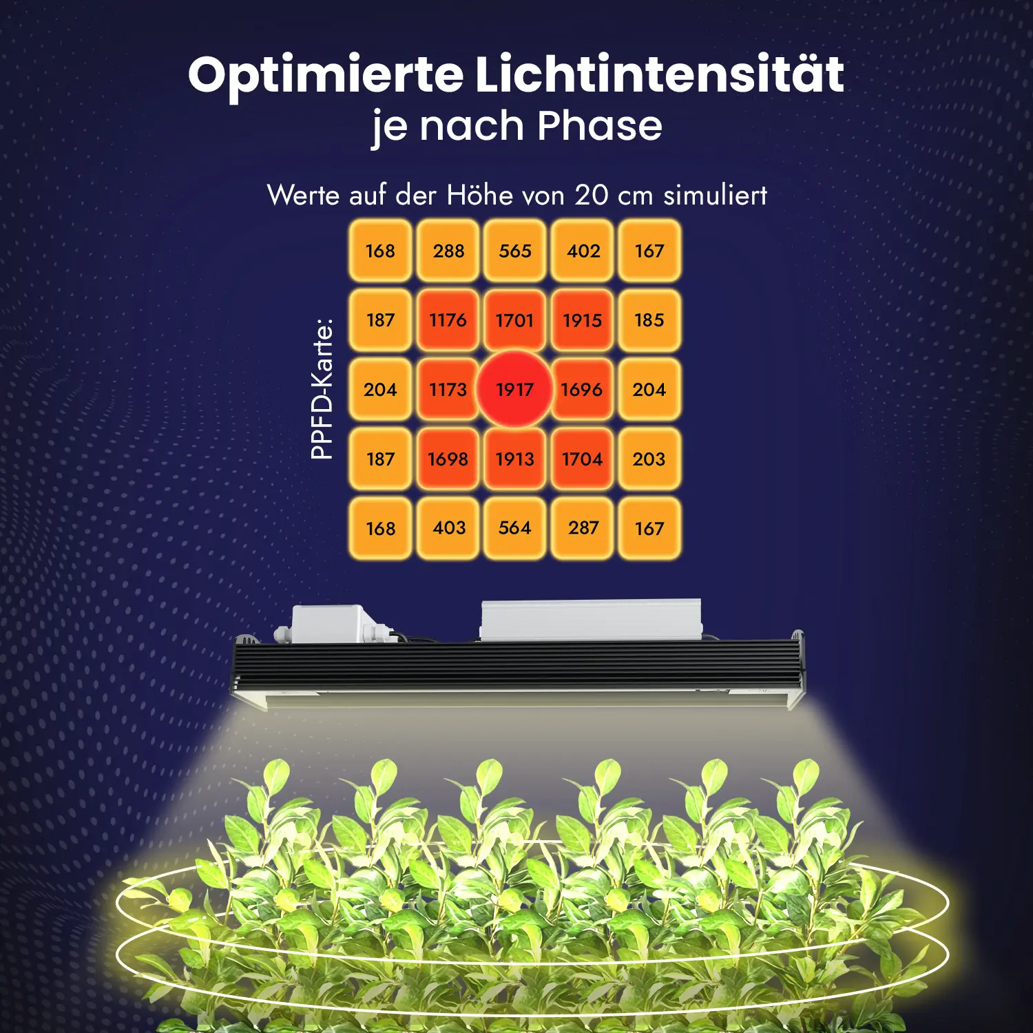 Optimierte Lichtverteilung: Ein Abstrahlwinkel von 120° gibt dir eine gleichmäßige Ausleuchtung ohne Hotspots für ein perfekt uniformes Wachstum.