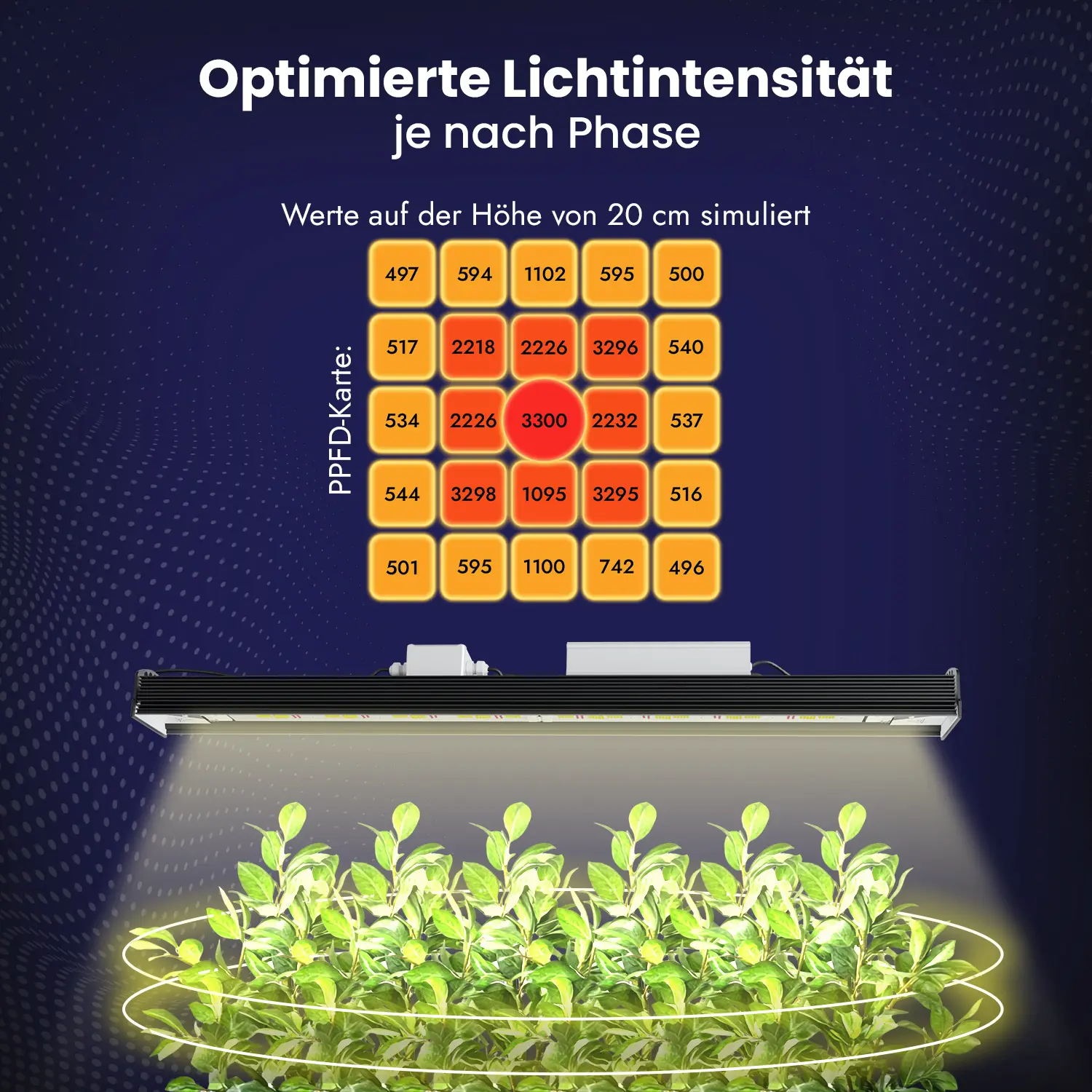 Optimierte Lichtverteilung: Ein Abstrahlwinkel von 120° gibt dir eine gleichmäßige Ausleuchtung ohne Hotspots für ein perfekt uniformes Wachstum.